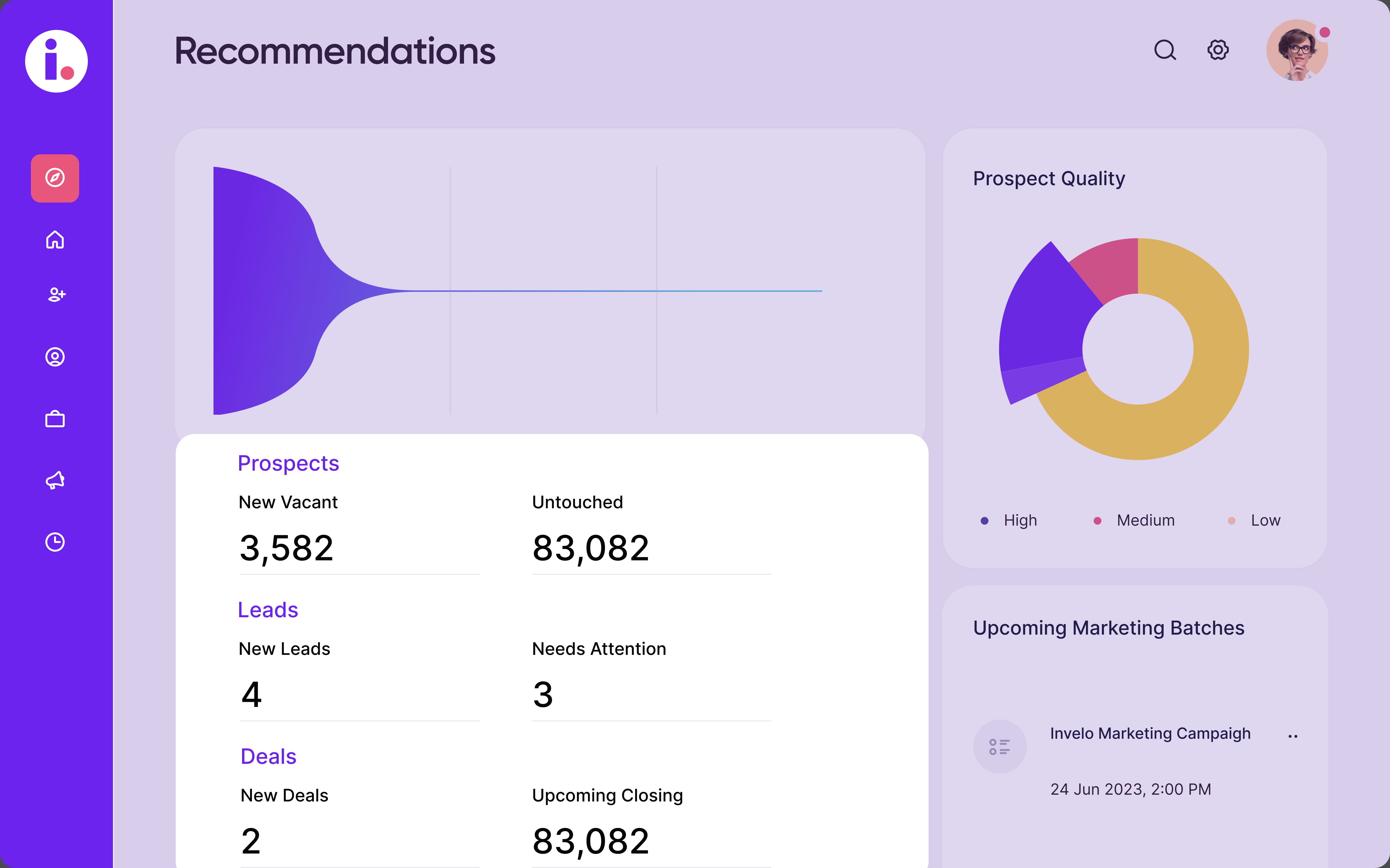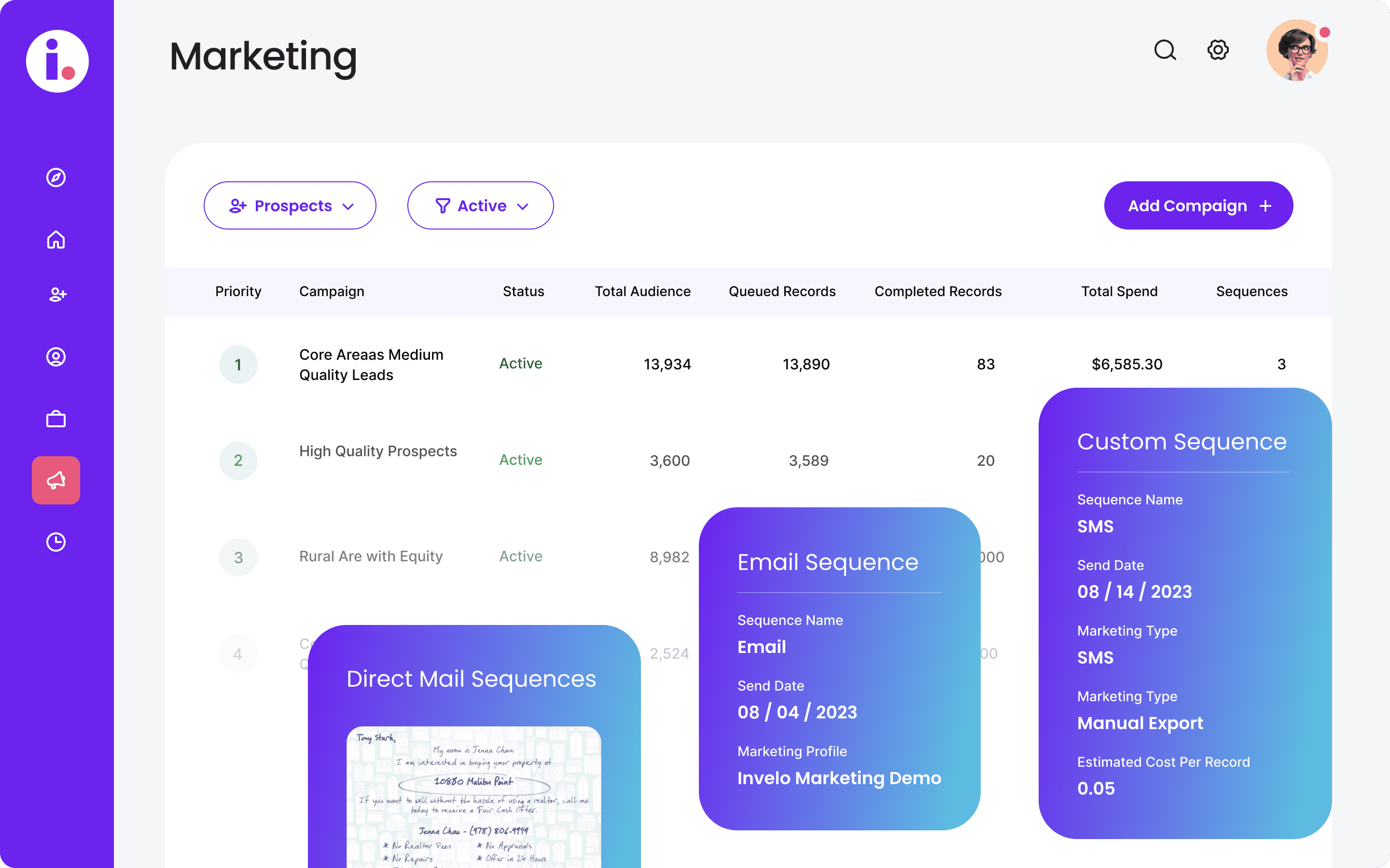 Before Invelo I would have to use 5 different systems for finding prospects, running marketing, and managing leads. Now it's all in one place.